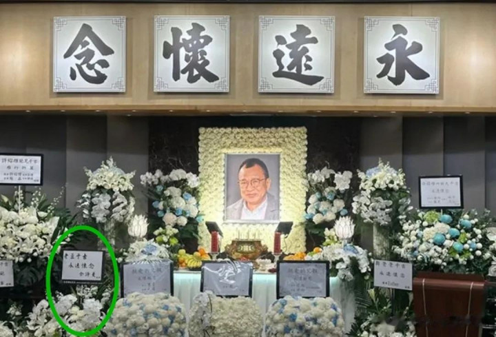在众多明星所送的花篮花牌中,佘诗曼所送的花牌位置格外引人注目——它被特意安排在灵堂正前方的家属区。