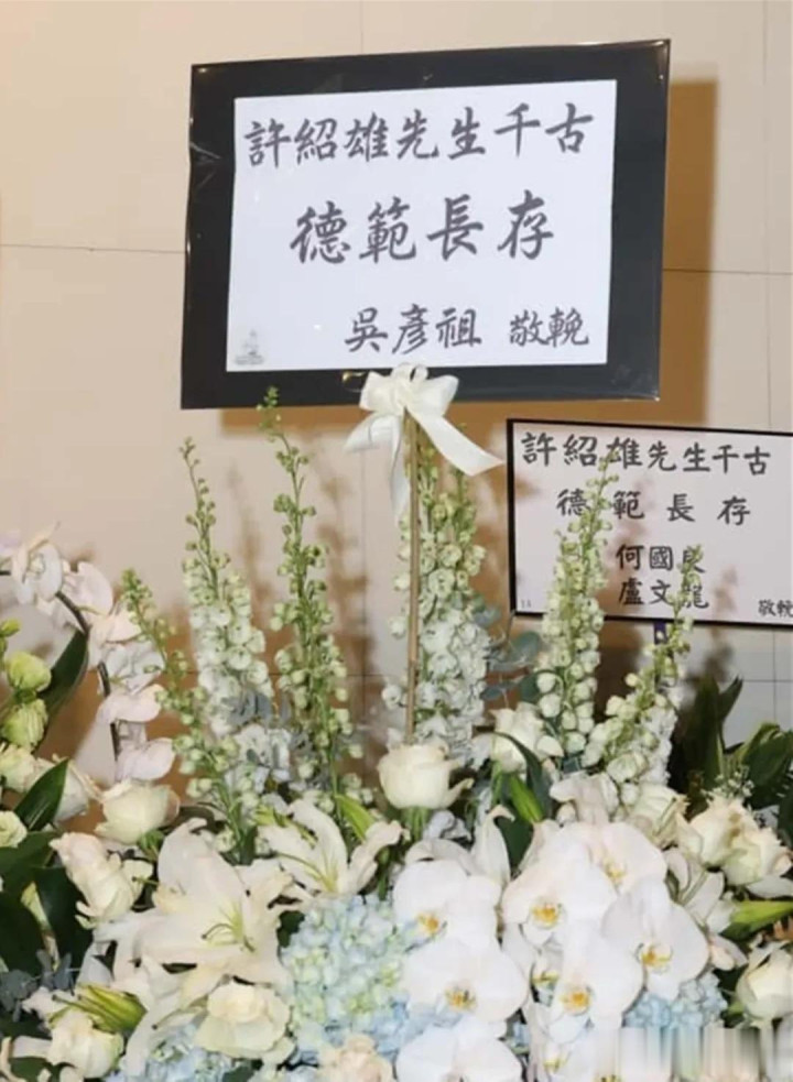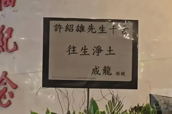 成龙、古天乐、宣萱、吴彦祖等人的花篮都出现在灵堂,尤其是成龙,这位与许绍雄相识数十年的国际巨星,用最传统的方式表达着对老友的告别。