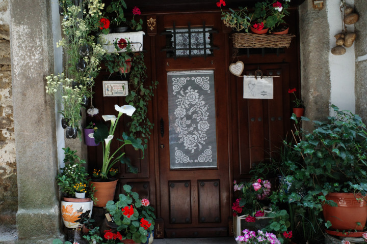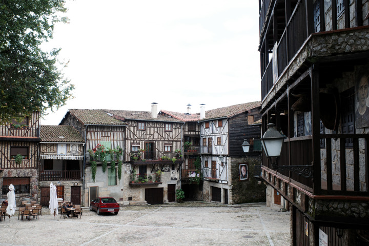 通往萨拉曼卡南部的深山一隅,莫加拉斯(Mogarraz)是西班牙葡萄酒之路上一个形状狭长的村子。村中遍布木骨结构的老房子,暮色中金色的风和光,渗透在老墙垣的石缝里。