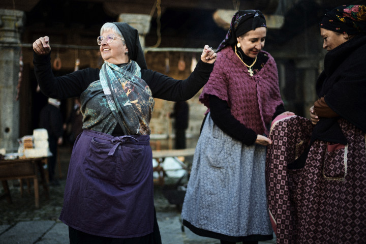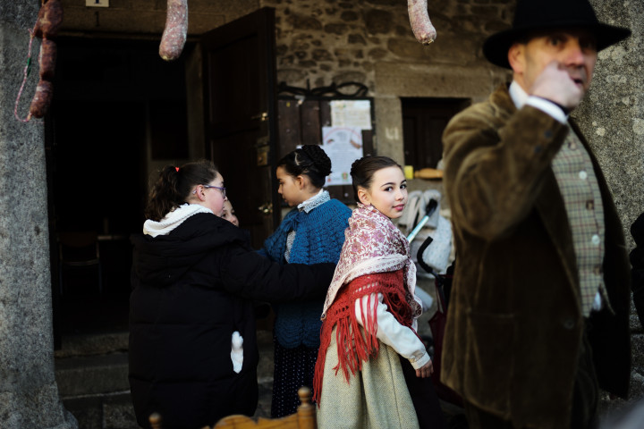 老妪与少女,挽起发髻,长裙及地,每个人都搭着祖母辈的绣花马尼拉披肩,婀娜的流苏垂到腰间。男士则穿着古老的刺绣衬衫、呢绒西装或者猎装,回到农人、乡绅或是骑士的身份,盛事的推动者费尔明家族的老小也一身古典服饰。人们跳着萨拉曼卡传统的查拉达对舞,用古钱币购买甜点与蜂蜜,连灌肠的配方和小贩们吆喝的句子都是老的。传统在这里正在被享受和续写,而传统也稳稳地托住了一个小镇的身份。