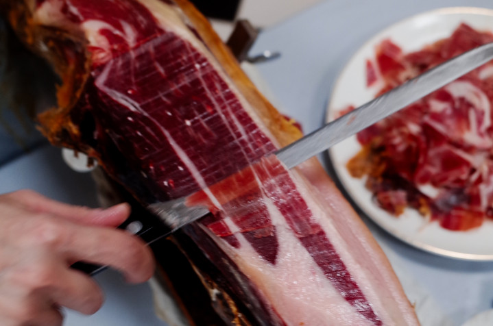 他,一身黑衣,手执细刃顺着火腿脂肪纹路的走向。秋屠、冬腌、春转、夏收,他的人生以季节计算。他年轻时曾拒绝迁往马德里,“城里的节奏太快,火腿的风味太浅。”