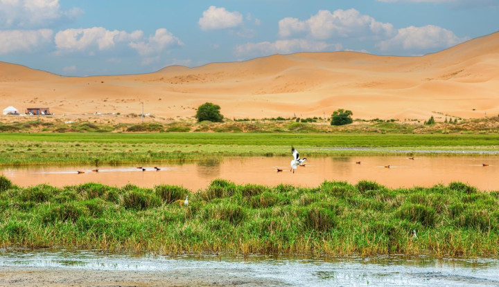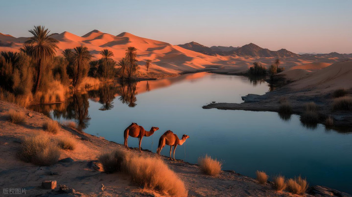 烈日当空,黄沙滚滚。一支驼队迷途于塔克拉玛干腹地,水囊将尽时,领路人忽瞥见天际一抹深绿,冲近一看,竟是胡杨成荫、碧波荡漾的天然绿洲!泉水从沙丘间汩汩涌出,芦苇丛中水鸟惊飞。这无人知晓的秘境,如沙海明珠般静候了千年。