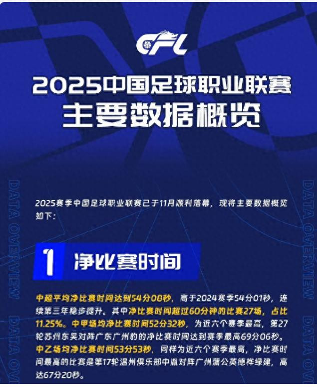 不管是中超,还是中甲,更还是中乙,净比赛时间都超过日本联赛和韩国联赛,我们的数据提升,这是一件好事情。从"停表大赛"到"真刀真枪",中国足球用三年时间打了一场翻身仗!54分08秒不是终点,而是新的起点!当球迷开始讨论"这场比赛够不够爽"而不是"裁判又黑了没",这才是中国足球真正的进步!你觉得中超净比赛时间能冲进世界前十吗?评论区见!