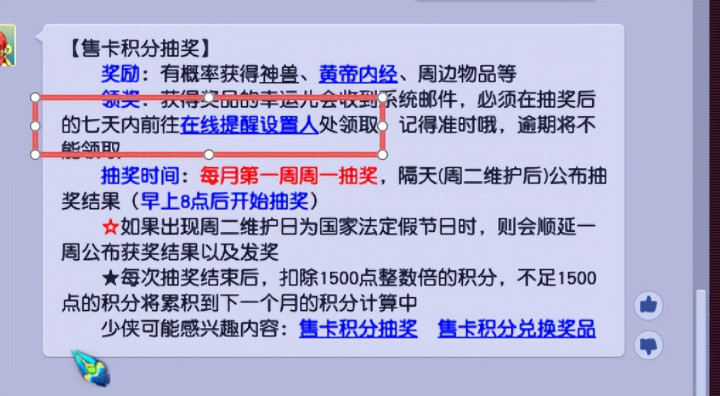 第二句也有问题,说要再充值20000点专用点。从来没听说过售卡积分中的神兽,还需要再冲点卡的,都是能直接领取的。