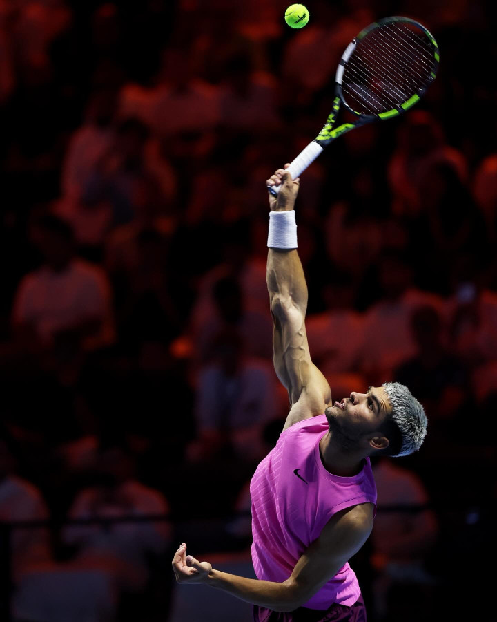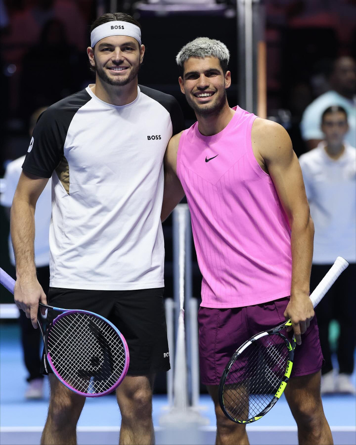 虎扑10月17日讯沙特六王大满贯网球表演赛半决赛,世界第一阿尔卡拉斯6-4、6-2战胜世界第四弗里茨,连续两年打进决赛。决赛,阿尔卡拉斯将迎战辛纳。决赛将在10月19日凌晨2点30进行。